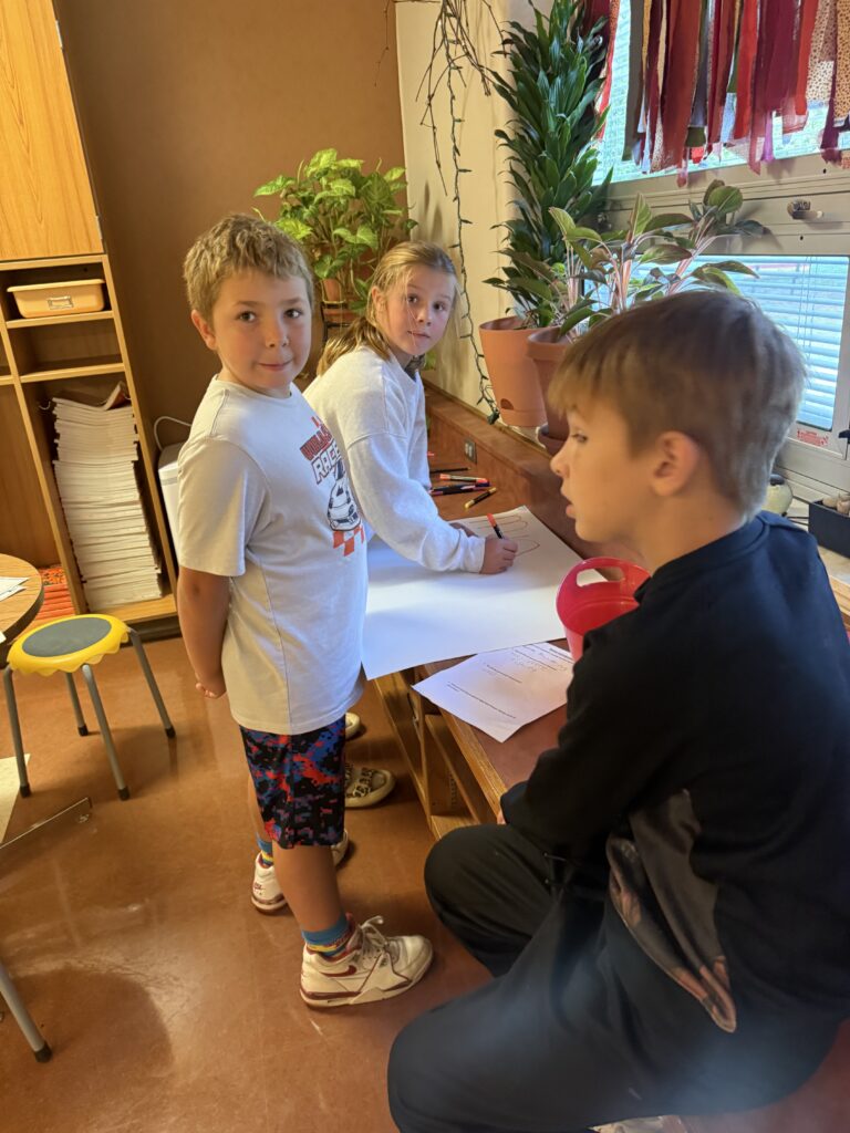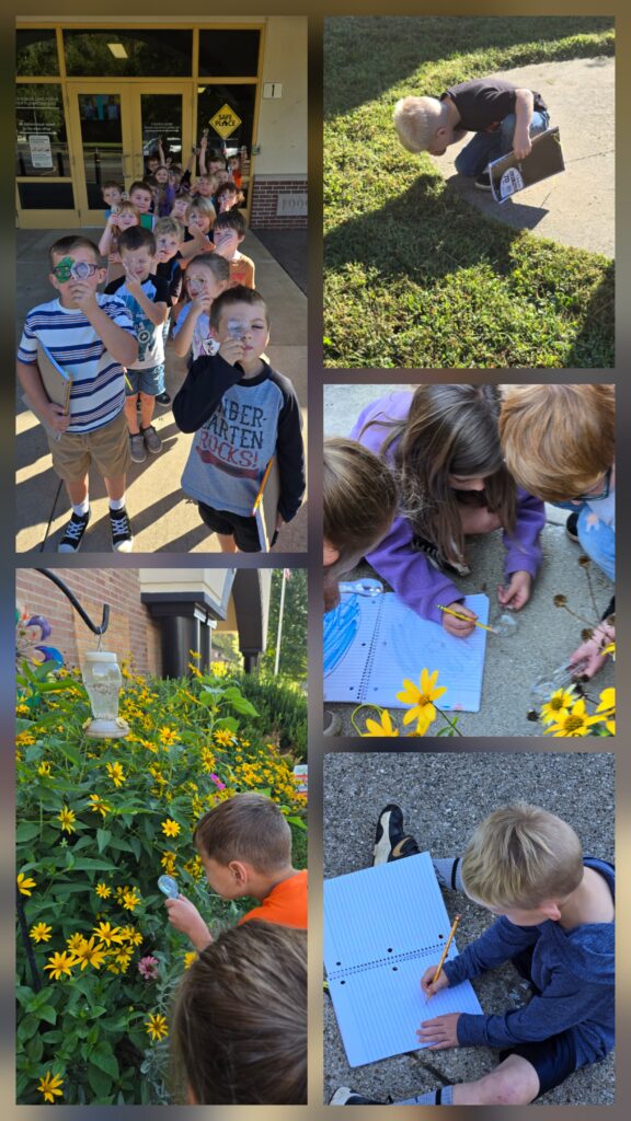 Kindergarten students spent some time this morning observing and drawing insects we found around our school gardens. The children have found a love of insects inspired by the book ” I Love Bugs” by Emma Dodd from our Wonders curriculum.