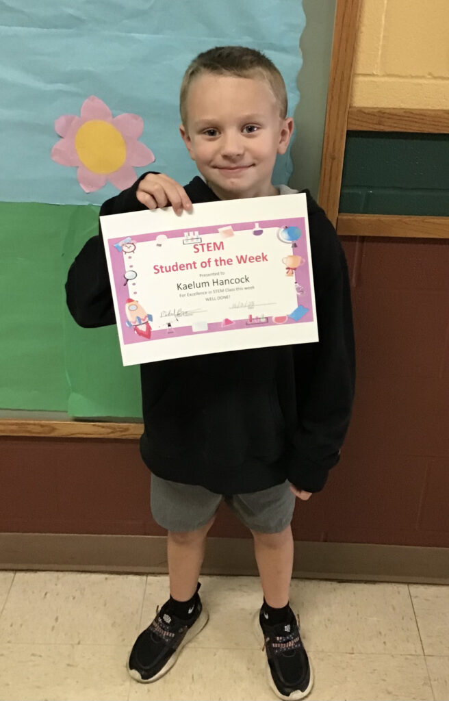 Kaelum loves STEM class. He has been working so hard lately and trying to set an example for others. He is always interested in what we are working on and takes an active part consistently in work and in discussions. Congratulations Kaelum.