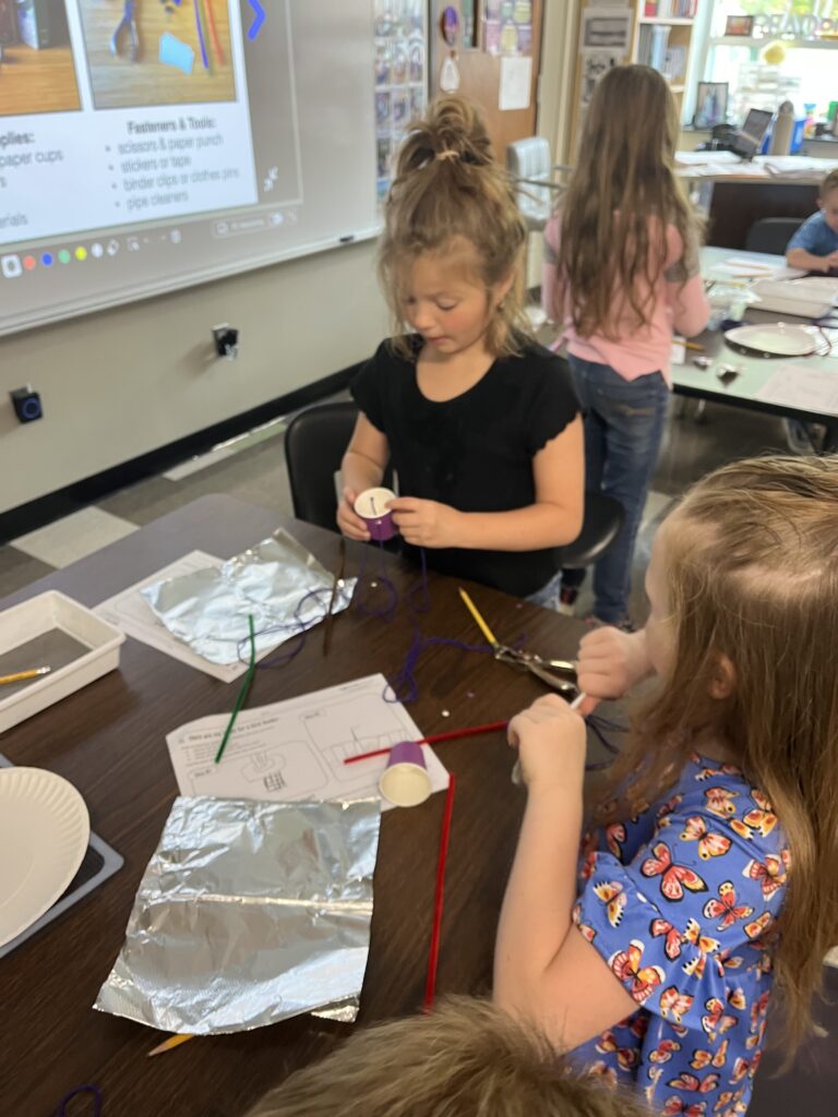 This week in Science students reviewed the steps of the engineering design process with their first stem challenge of the school year. Students were given 12 index cards and 20 dot stickers. They had to work together to build the tallest tower in the time limit. We talked about the idea of a growth mindset and how important that is when completing stem challenges and persevering when something doesn’t go as planned. Students took what they learned the first time and completed the challenge again. They did a great job and there were some very creative designs!