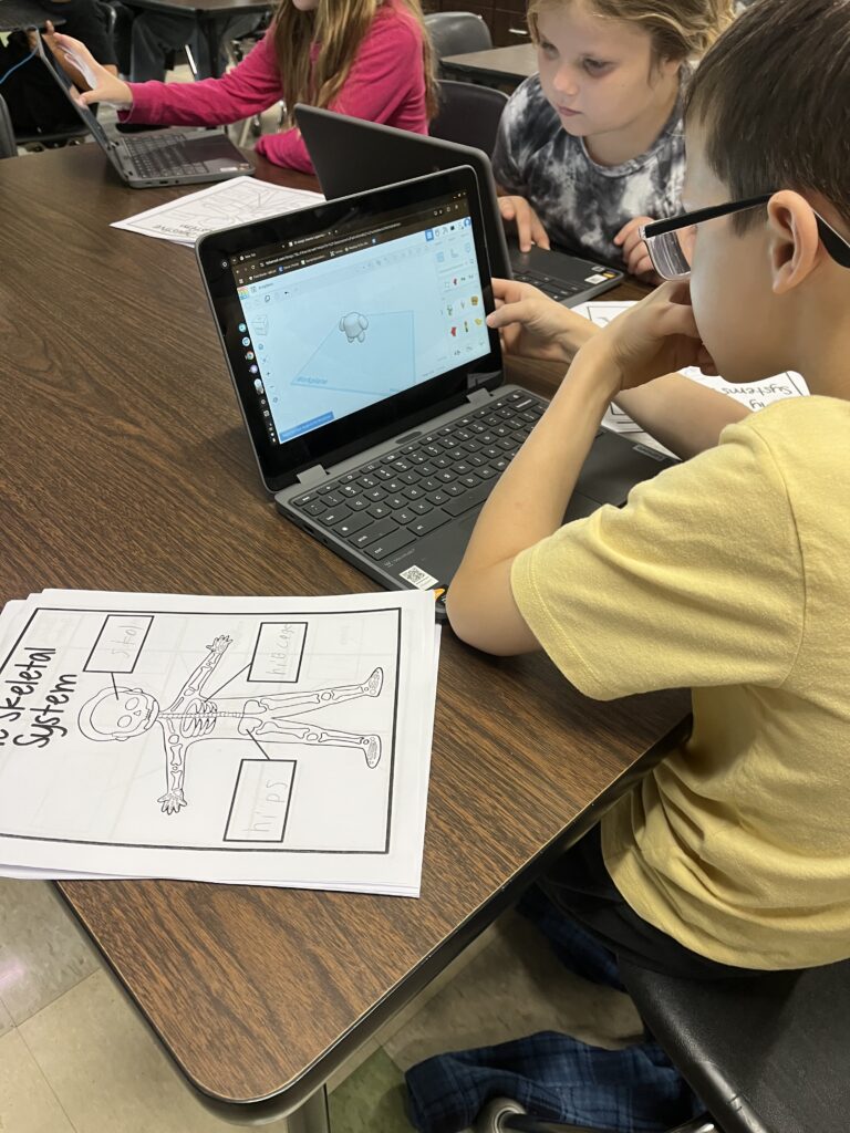 Fourth grade students have been working on Human Body Systems. Each student chose a body system and made a 3-D model of the body system and the vital parts using TinkerCad. Students had to label the parts of the system as well.