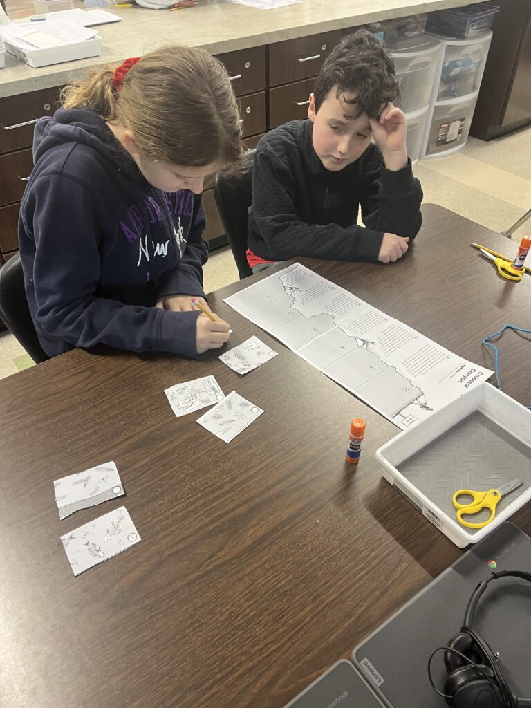 Third grade students explored the idea that the rock under our feet sometimes contains fossils, and investigated how these fossils reveal changes in habitats through time. In the activity, Fossil Dig, students used paper to create a model fossil dig. They identified traits of fossils to determine what the habitat looked like when these organisms were alive. Then they used this information to figure out where some Mystery Fossils belonged in their fossil dig.
