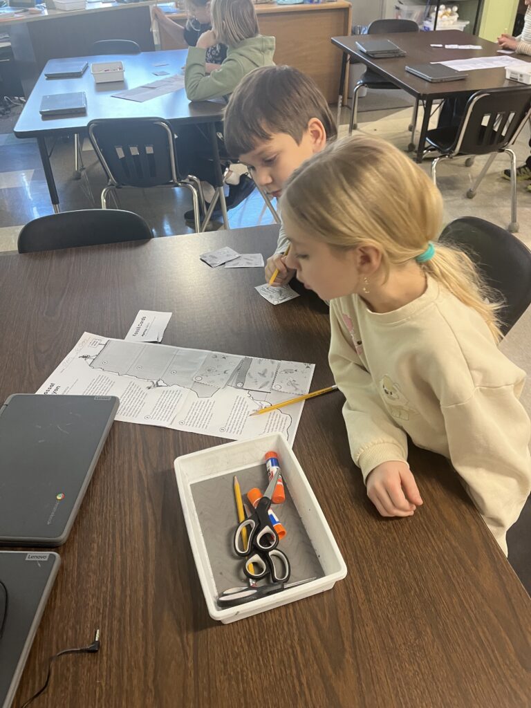 Fourth grade students also participated in a STEM challenge to wrap up their Animal Adaptations unit. Students were challenged to create a model of an animal that highlighted that animal’s adaptation to their environment. Students then presented their creation to the class.