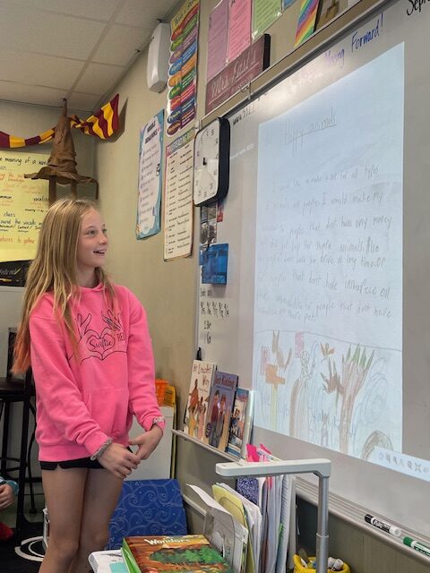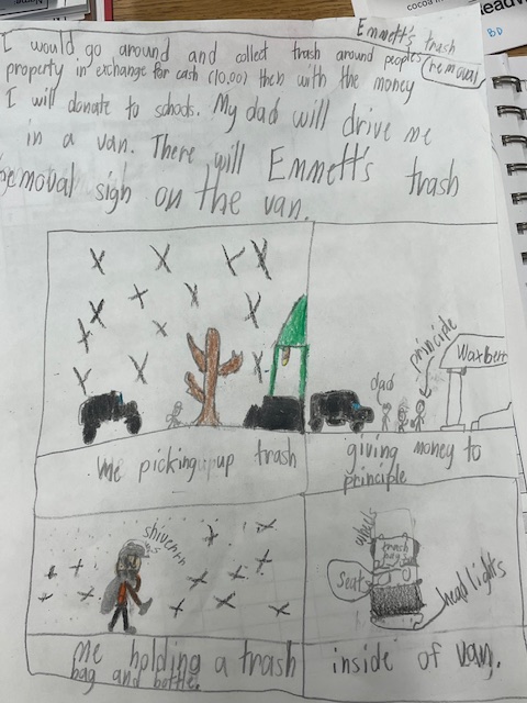 After reading a nonfiction text about children who began businesses that help others, fourth graders worked together to dream up businesses that could help our very own community. We have some very compassionate students! We also enjoyed time together outside!