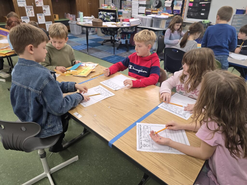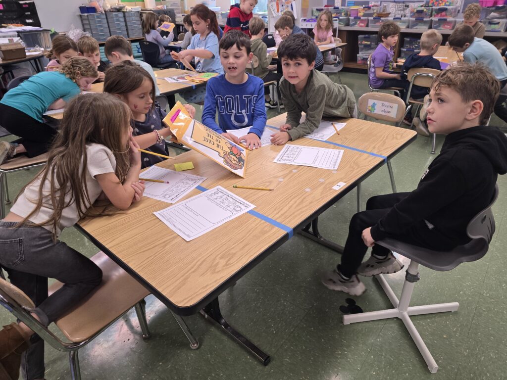 We are working on identifying nonfiction text features and then explaining how these features helped them to better understand the text. We also had a visit from Mrs. Sechler this week and she told us stories.