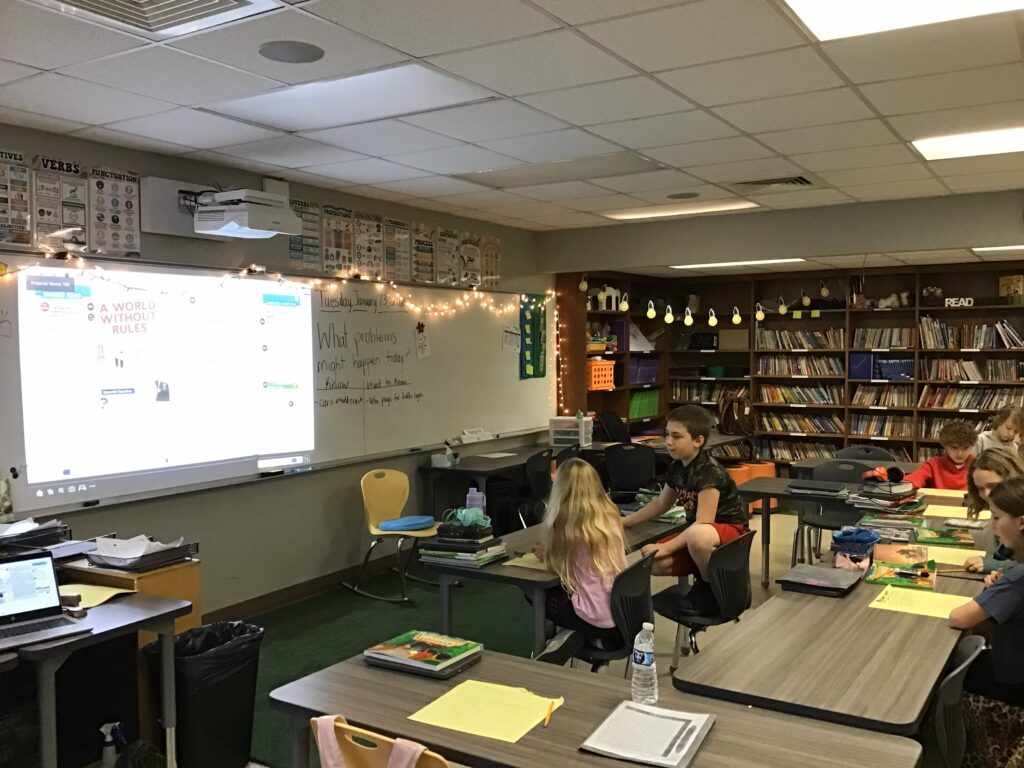 Imagining a “World Without Rules” sounded like fun at first…until we realized all of our favorite things stopped working, being safe, and looking good. 4th Grade ELA is studying Narrative Nonfiction and focusing on the essential question, “Why do we need government?”