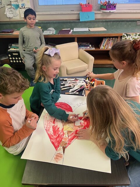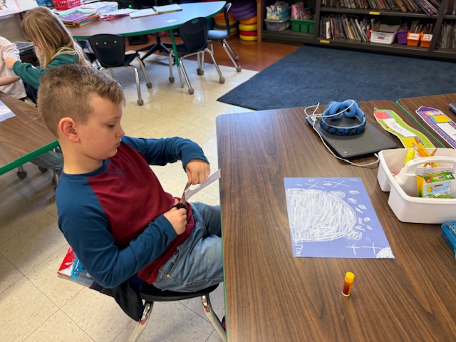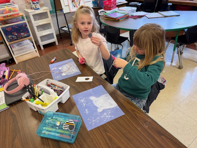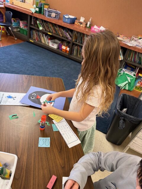 Kindergarten creating melted snowman characters to star in their next piece for Writer’s Workshop. They are working on using graphic organizers, C.U.P.S. editing, and sound spelling their sentences.