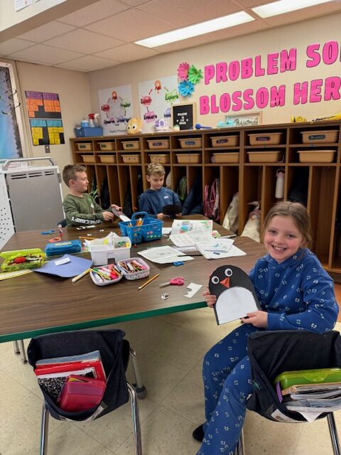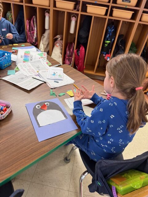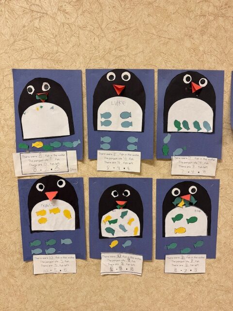 First graders were getting crafty this week as they made some polar bears and subtraction penguins.