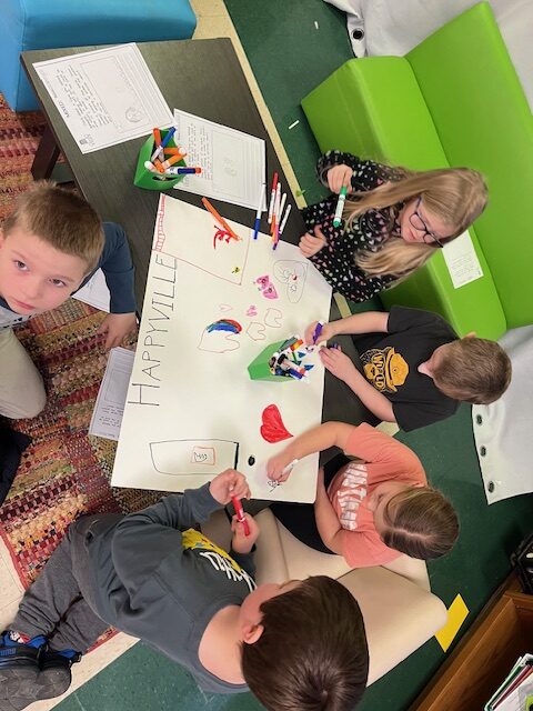 Second graders imagined a town where everyone belongs. We wrote about actions we could take to make others feel welcome.