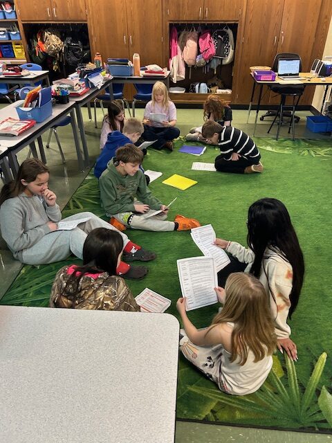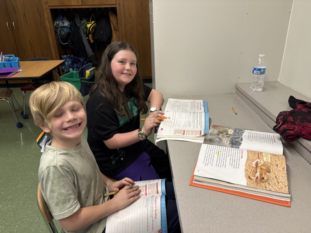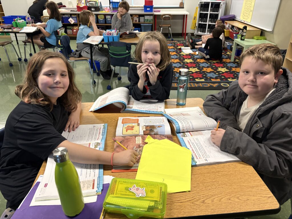 3rd graders are working together to read and answer questions over The Amazing Animals of the Mojave.