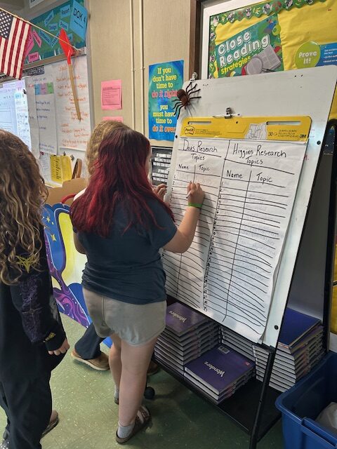 4th graders are brainstorming their ideas for their thesis statements for their literary essays.