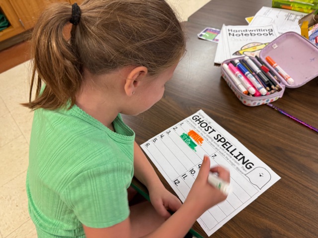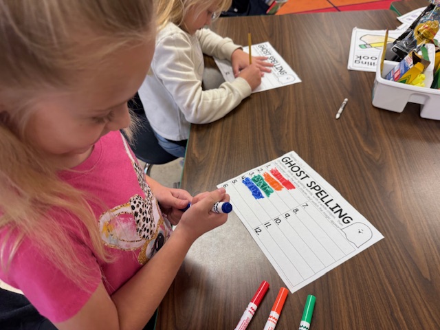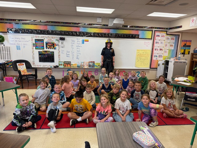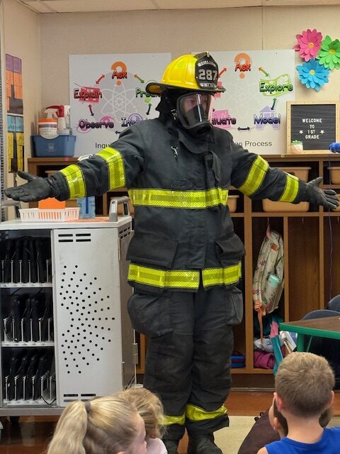 First graders have been practicing their spelling words in a “spooky” way with ghost writing. They also learned about Fire Safety week with a vist from Firefighter Lieutenant Samantha Smith.