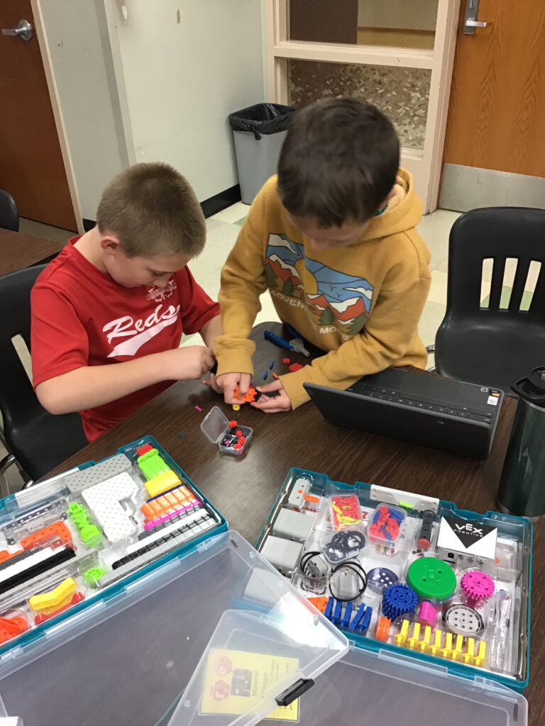 5th graders building supercars out of vex go kits that run on the power of rubber bands. These students will use these cars to learn about energy.