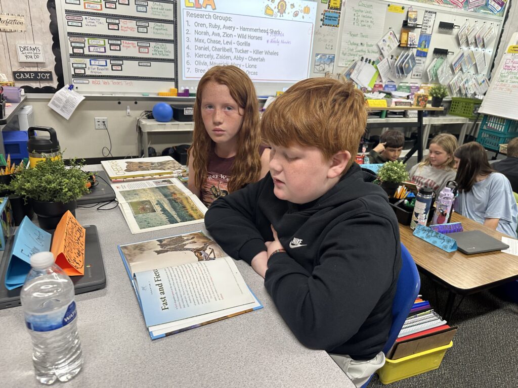 This week in English Language Arts we are working in our Wonders workbook in groups for a few minutes. Sometimes we will read a book in the beginning of English Language Arts. We are learning about primary and secondary sources. We are also learning about the text structure “Cause and Effect”. We are reading and learning about narrative nonfiction. That is all we are doing in English Language Arts.