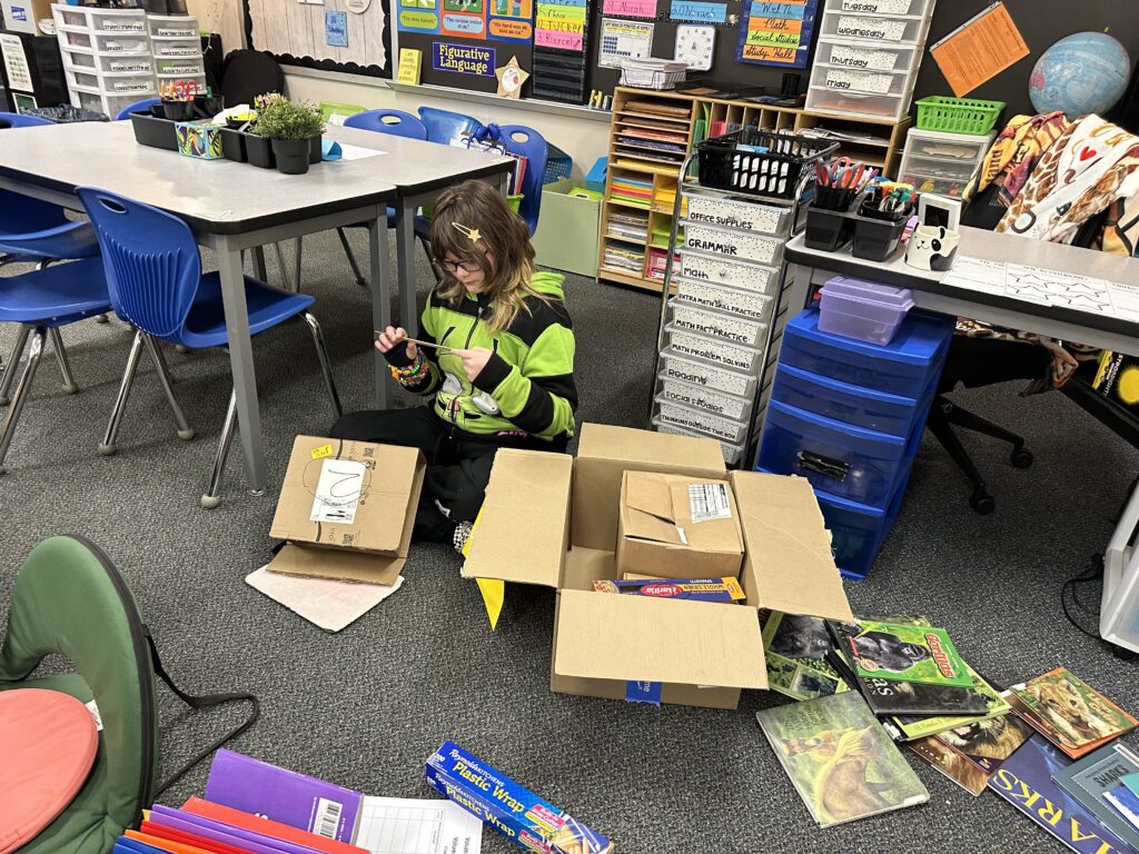 We did so many fun activities and games this week. We did lots of Blookets! They were over helping verbs, progressive verb tenses, and plot. We also did a flick the football game in math where we were reviewing additive volume. It’s where you flick a paper football to score points. There are different colored chips. Red chips let you put an obstacle in front of another team.Blue gives you another turn. Green lets you move closer to the goalpost. Purple chips let you shoot farther back for double points. Whoever has the most yellow chips gets to decide the flicking order.