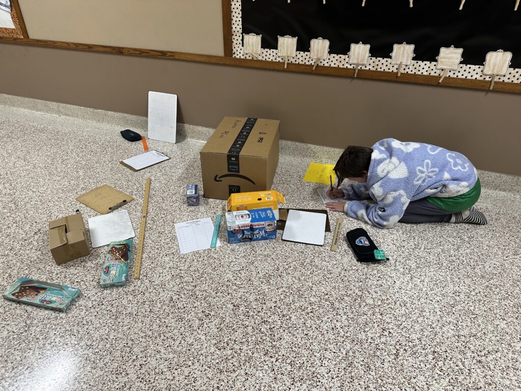 In Math, we have done a ton! We are doing the volume zoo, it’s going to be a lot of fun! So you are probably wondering, “What volume is a zoo?” right? It’s where you take cardboard boxes and you measure the length, width, and height of a 3D object. A few of the animals were shark, armadillo, penguin, tiger, moose, bear, and chimpanzees. We had to take rulers and measure the sides to see how much the volume would be.