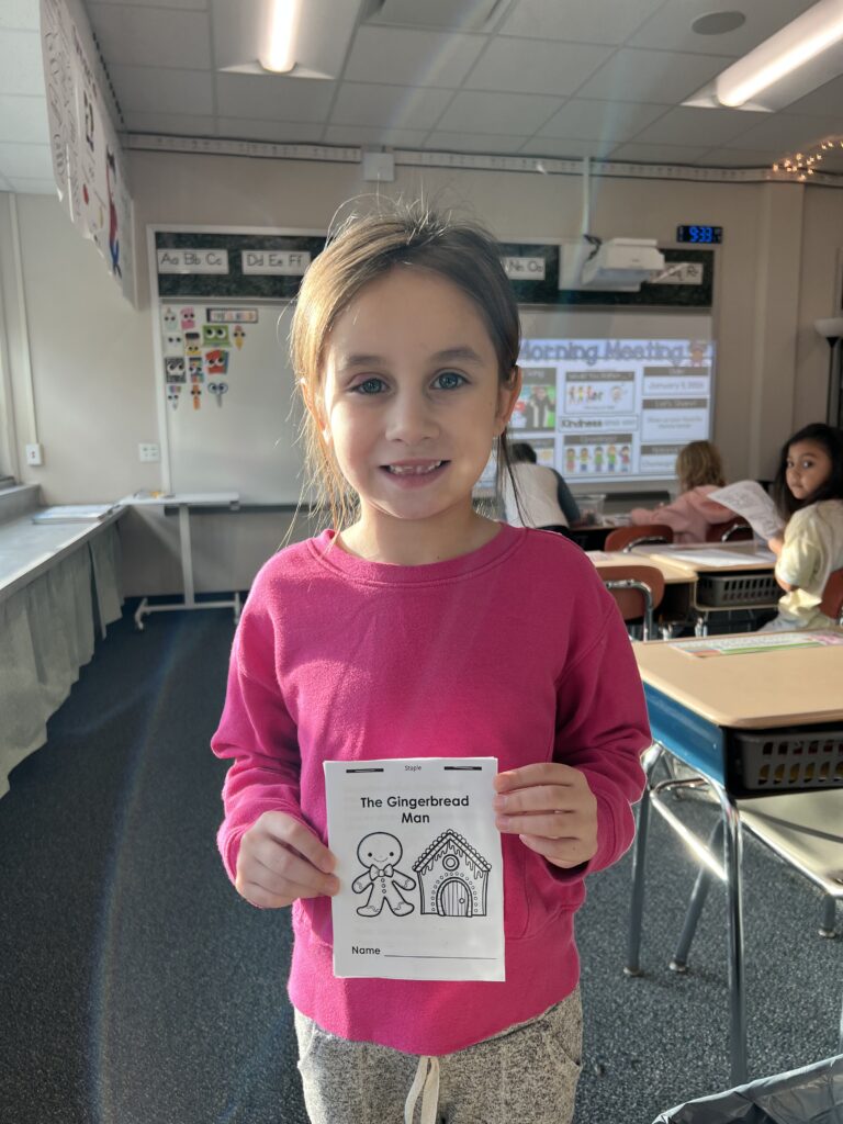 Mrs. Dinsmore’s class reviewed folk tales this week and read the gingerbread man. The students made their own little booklets and finger puppets and retold the story in small groups.
