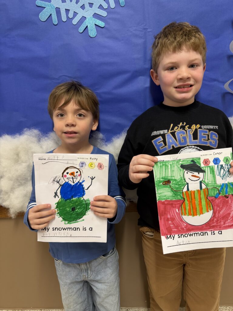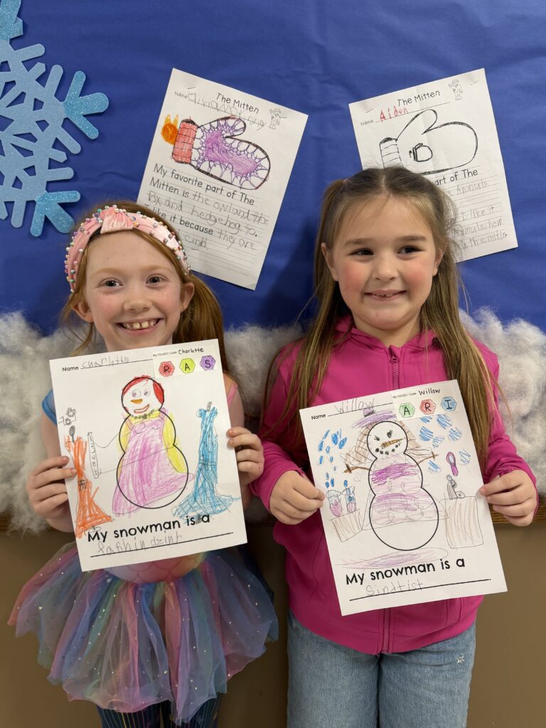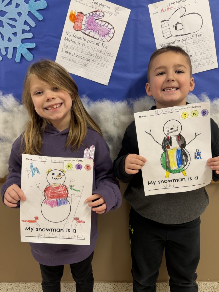 We also read some of the books from the Snowmen at Night series. After we read Snowmen at Night, we explore our RIASEC codes and careers we might want to pursue. Students then filled out an application for that job explaining why it is a good fit for them and why they would enjoy it. Finally, they decorated a snowman to look like their career.