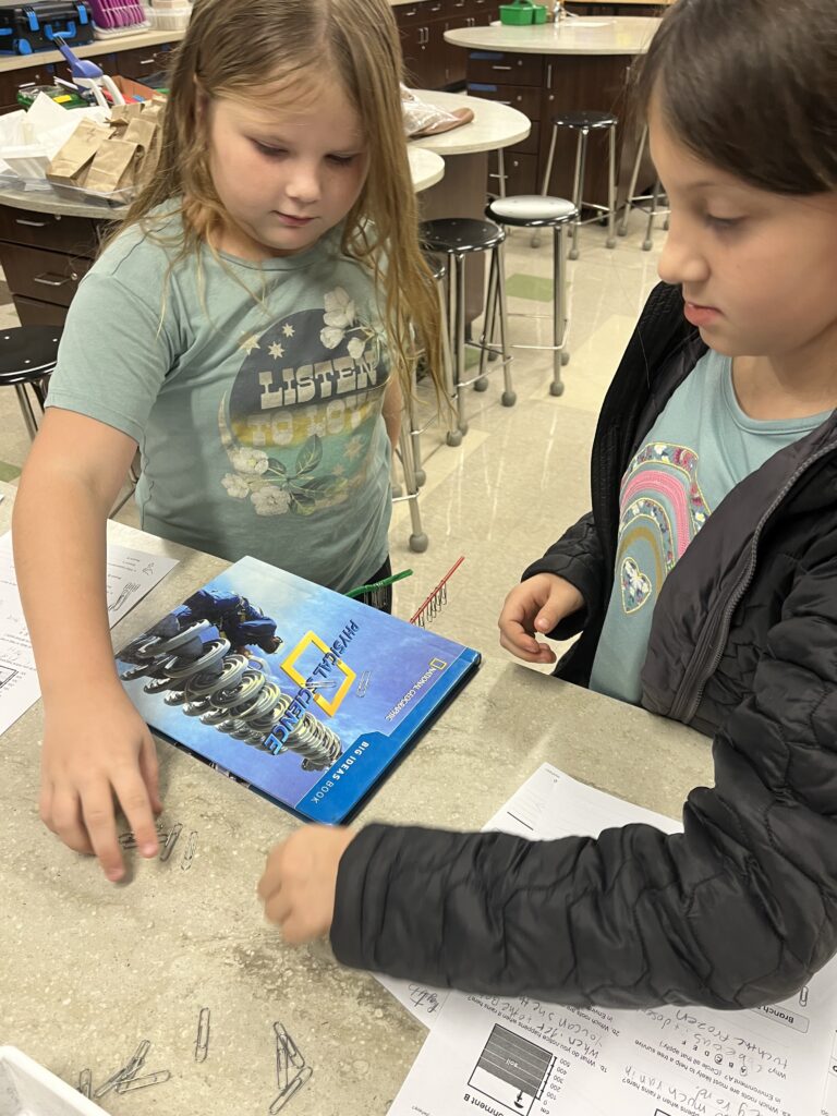 This week in Science students reviewed the steps of the engineering design process with their first stem challenge of the school year. Students were given 12 index cards and 20 dot stickers. They had to work together to build the tallest tower in the time limit. We talked about the idea of a growth mindset and how important that is when completing stem challenges and persevering when something doesn’t go as planned. Students took what they learned the first time and completed the challenge again. They did a great job and there were some very creative designs!