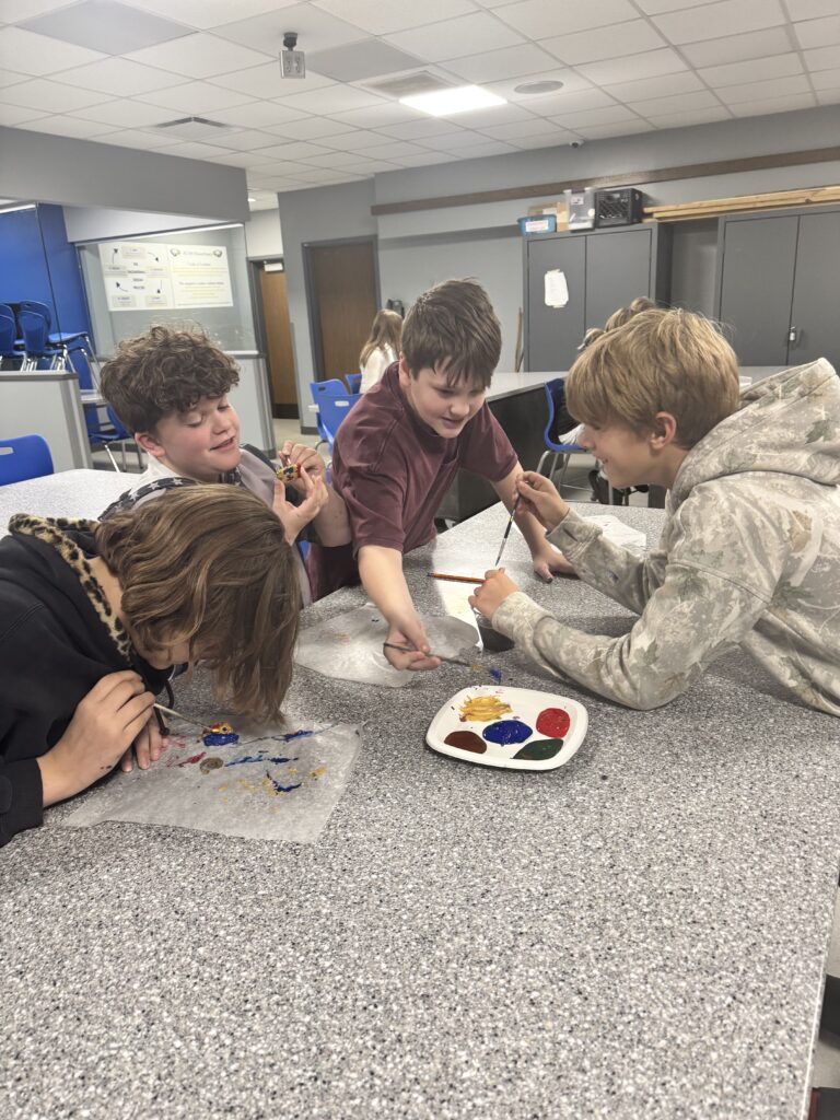 6th Grade finished up their Mayan Symbols by painting them with period-appropriate colors!