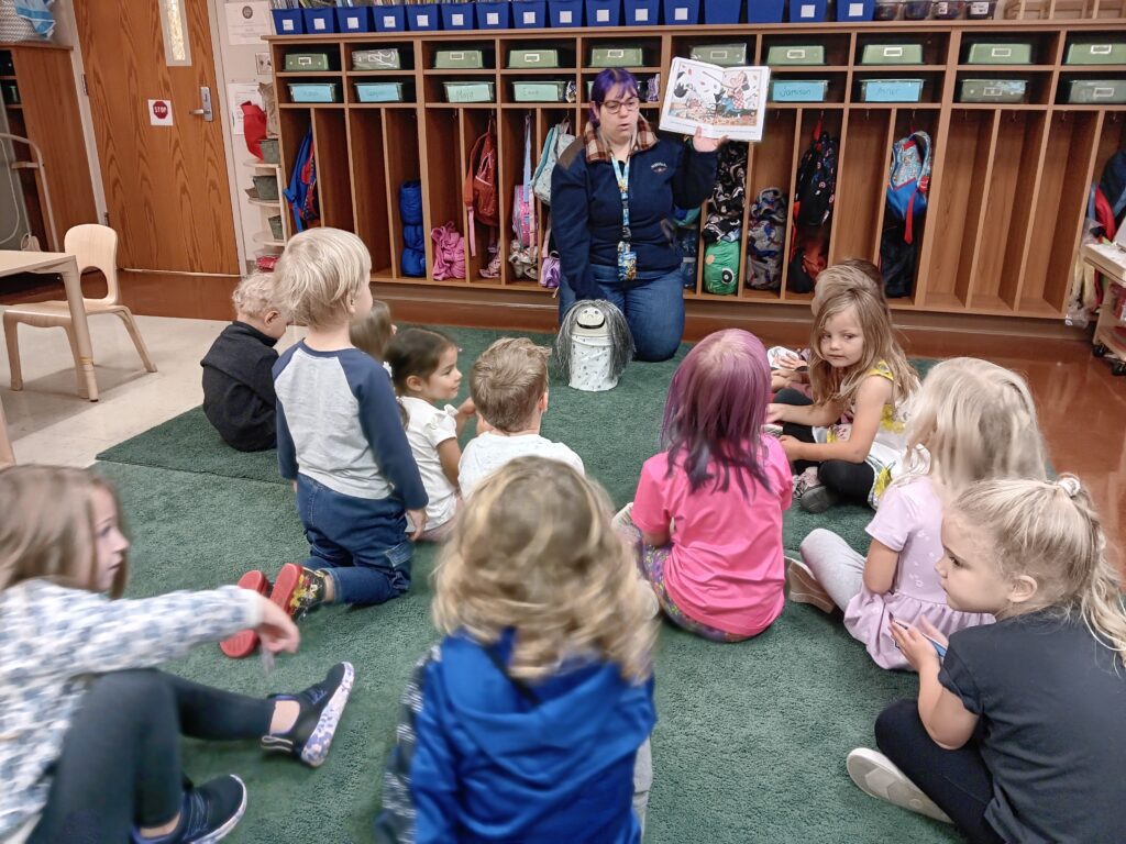 Kindergarten read 1000 books as a class and earned a bring your stuffed animal to school day. They used their stuffed animals in math to compare objects by height and put them in size order.