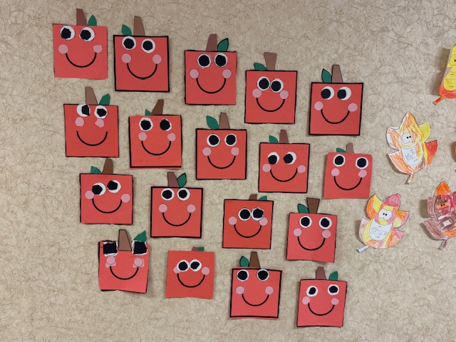 This week in Preschool we started a Clothing study, and talked about pumpkins and apples. We did an apple experiment, learned how pumpkins grow, and talked about why long sleeves, pants, and coats are important for our bodies in cold weather.