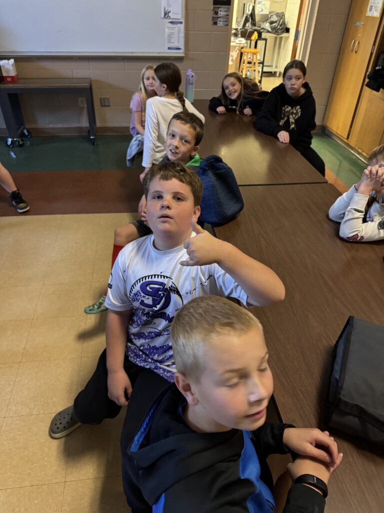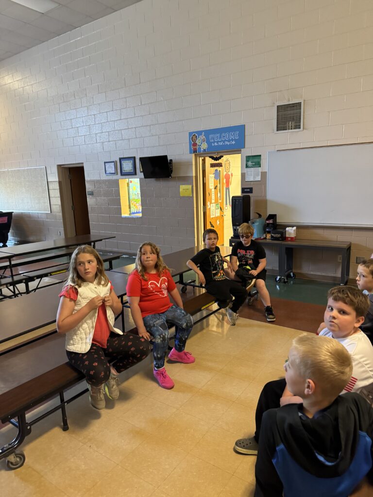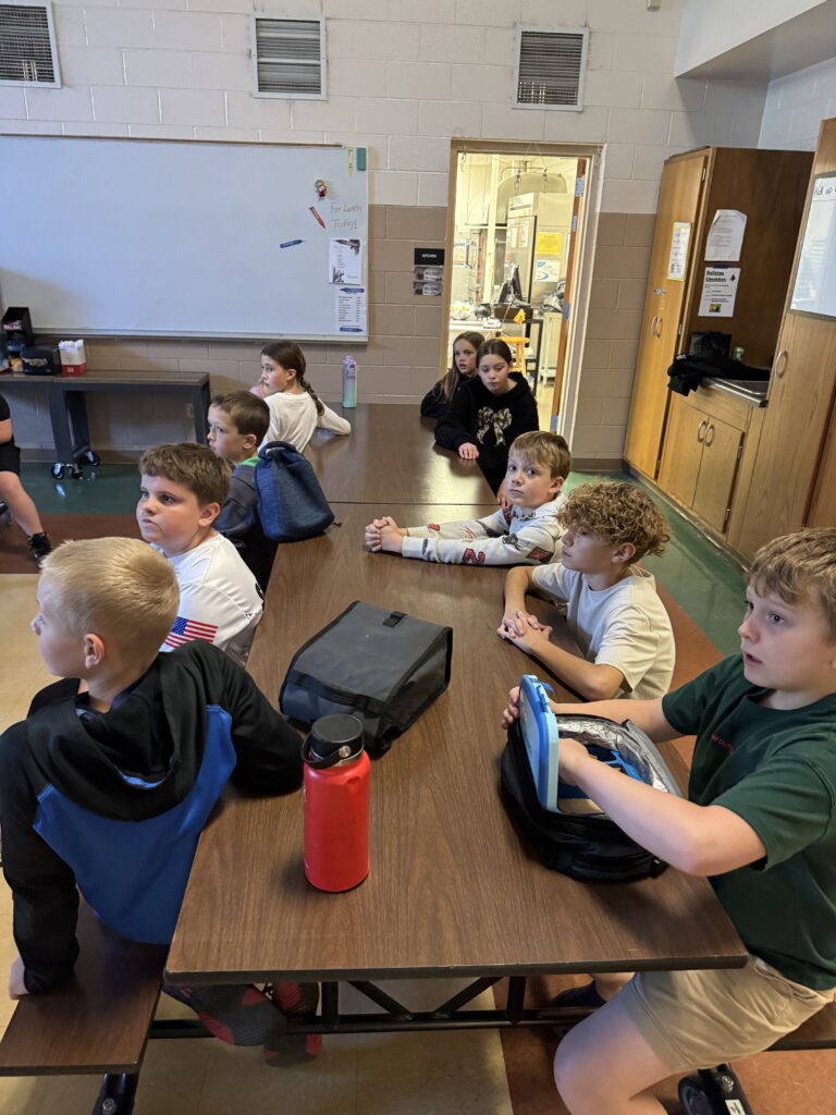 4th grade students eating lunch together and enjoying their time away from the 5th graders.