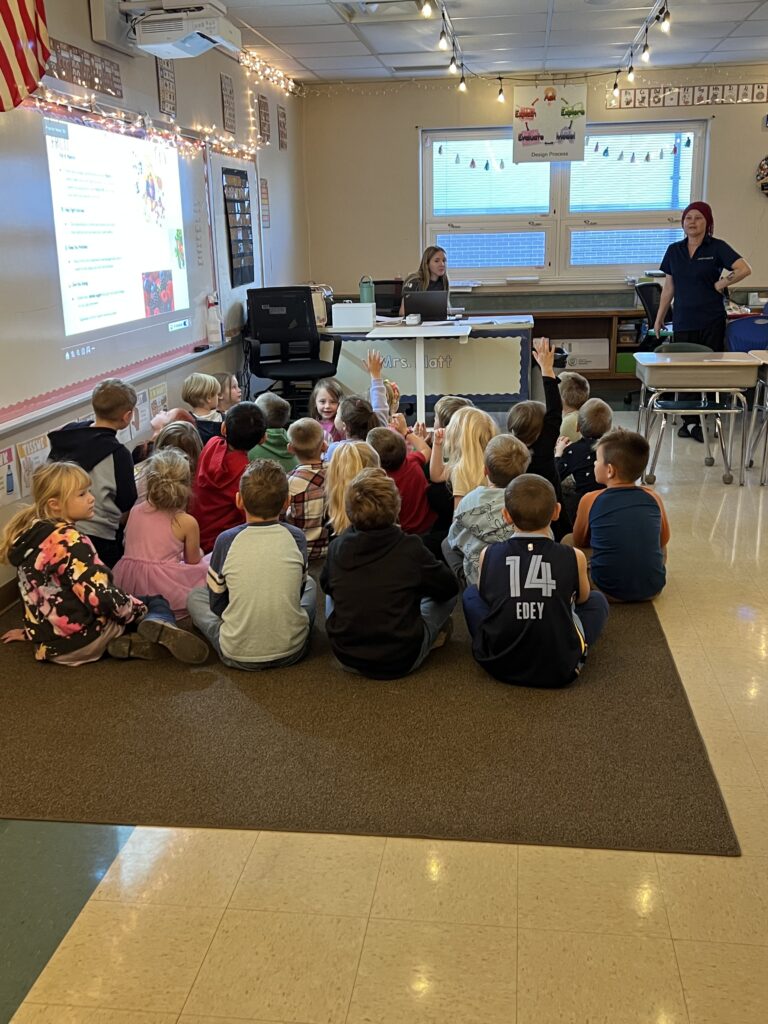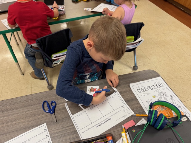 Mrs. Platt’s first grade class has been busy this week. The students worked in pairs working on a word sort activity. They seemed to really enjoy working together and figuring out the activity. First grade also had a visitor this week. Miss Laquita from the cafeteria, came and talked about the important food groups and gave all the students a snack.