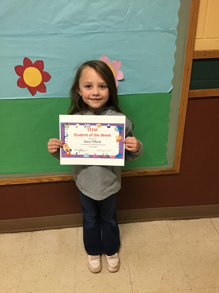 Kora loves STEM. She is always engaged and willing to put forth her best effort. She loves working with others and learning. Congratulations Kora!