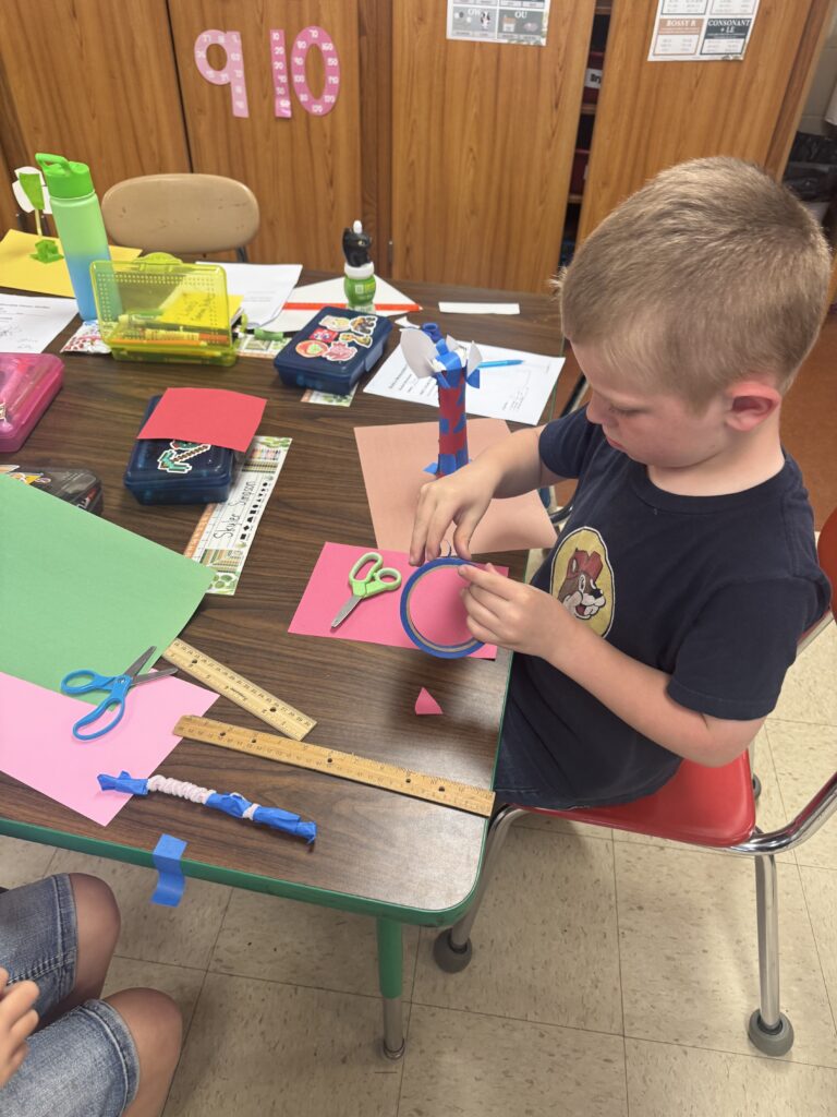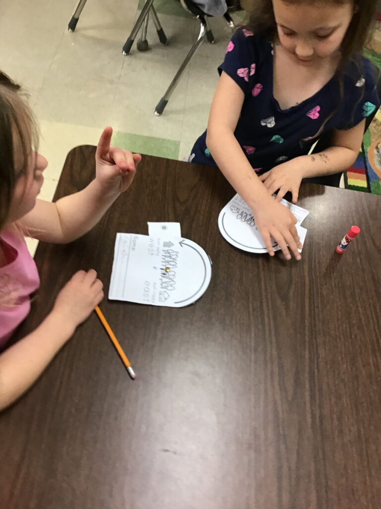 1st Grade students learned how the sun can help us tell directions. They learned that the sun rises in the east and sets in the west. They were able to use the “sun finders” they made to help figure out how the sun can help someone if they were lost.