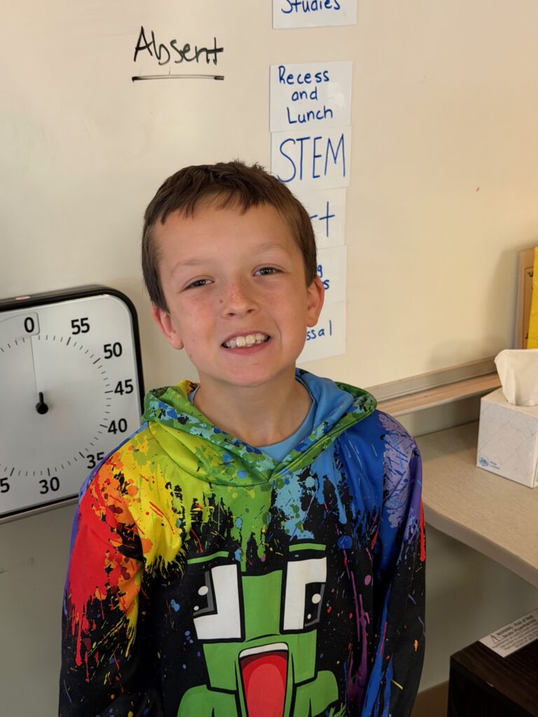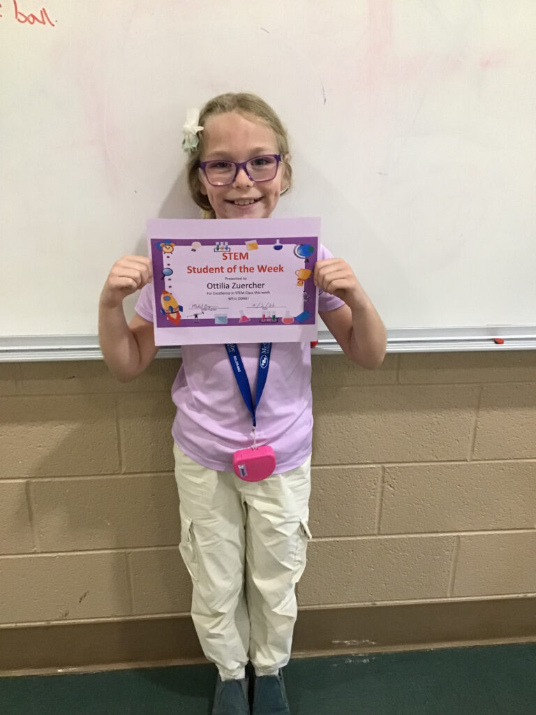 Tillie loves STEM and is always working so hard at discovering answers to real world problems and learning about the world around us. Tillie is always setting the example for others with following expectations and working hard at everything she does at school. Congratulations Tillie!
