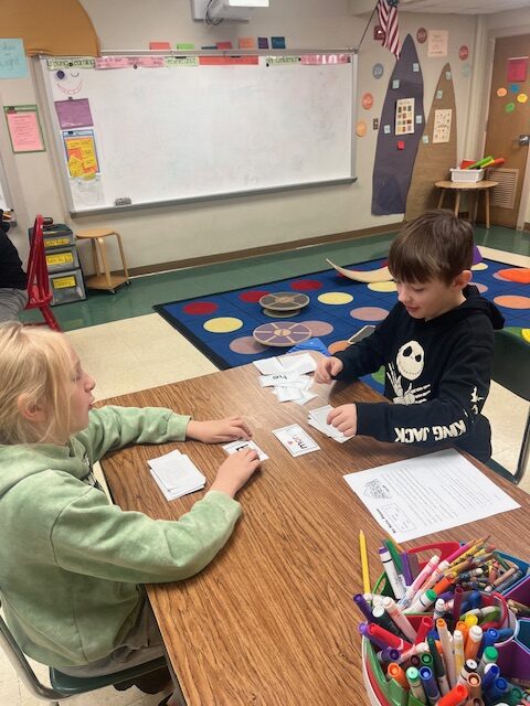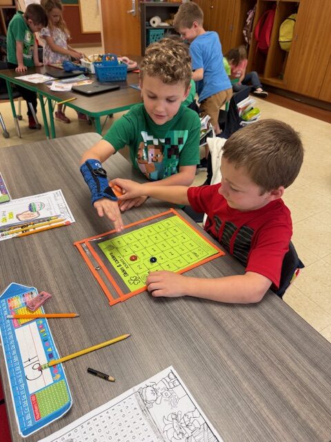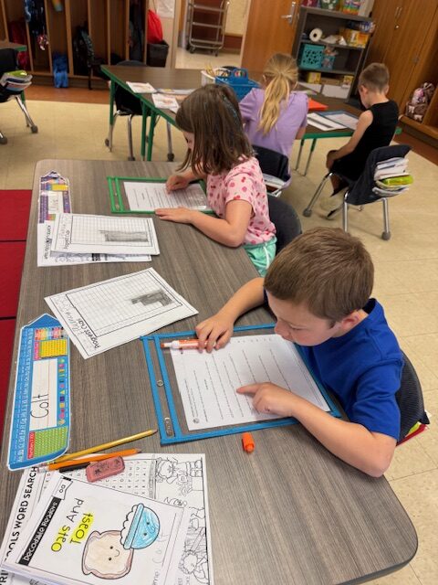 Mrs. Platt’s first graders are working on fluency and automaticity by pyramid reading. The students get with a partner and take turns reading each pyramid reading and then switch. This is a fun way to practice fluency.