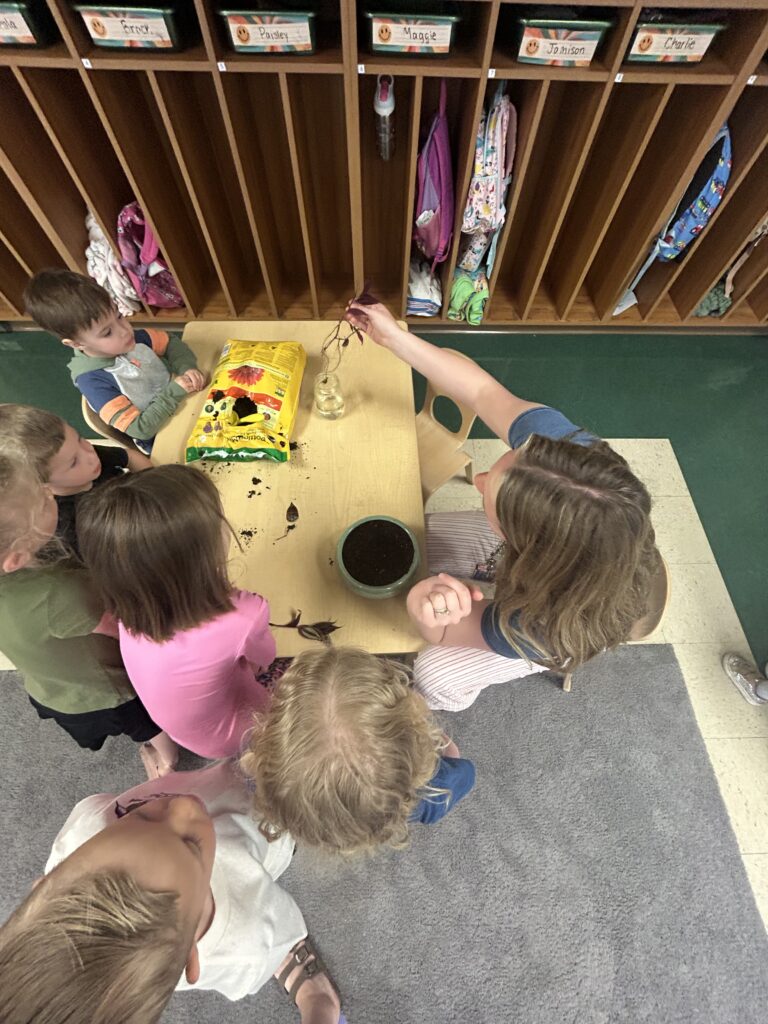 This week preschool has started their garden study. We talked about what kind of things a garden needs to be successful and potted our own plant!