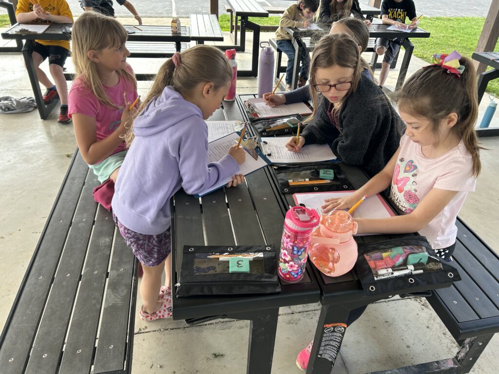 It was so beautiful on Tuesday that we had our writing class outside. My third graders loved that we were able to complete our narrative pre writing lesson in our outside classroom!
